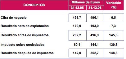 Resultados a 31 de diciembre de 2006 :