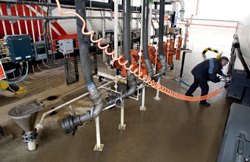 Detalle del nuevo brazo ligero, que permite hacer las purgas de los camiones cisterna de forma más sencilla y segura. |