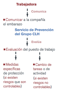 Para poder acogerse a estas medidas en el Grupo CLH lo primero que debe hacer una trabajadora embarazada es notificarlo lo antes posible, especialmente porque en las primeras fases de la gestación, conocidas como embriogénesis (formación del embrión) y organogénesis (formación de los órganos), el feto es más vulnerable. Para ello existe un formulario corporativo que debe entregarse al inmediato superior. Esta comunicación no es obligatoria puesto que, ante todo, prevalece el derecho a la intimidad de la persona, pero es de gran importancia para poder poner en marcha las medidas necesarias.