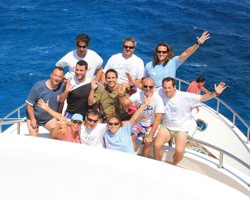 Guillermo (segundo por la izquierda, fila central) compartió una semana con un grupo de expertos buceadores. |
