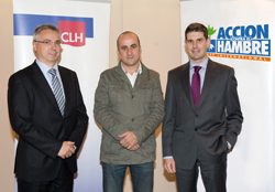 De izda. a dcha., el director de Comunicación y Relaciones Institucionales de CLH, Pedro Martínez; el responsable de Colaboraciones con Empresas de Acción contra el Hambre, Fernando Sevillano; y el director de Recursos Humanos de CLH, José Luis Conde. |
